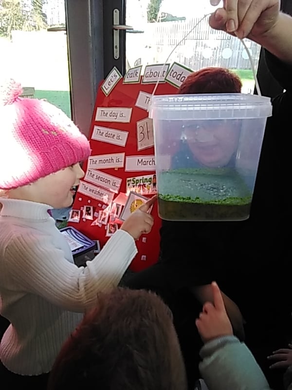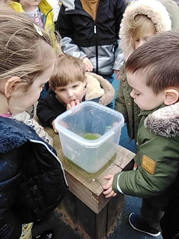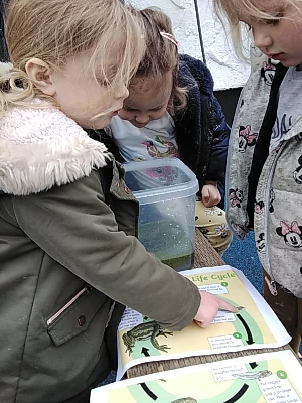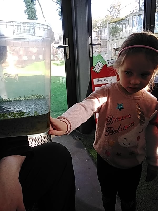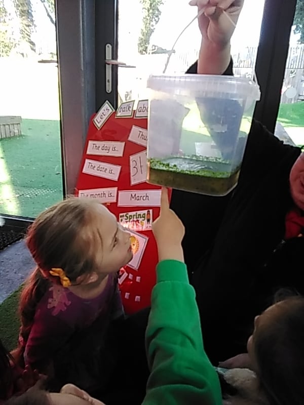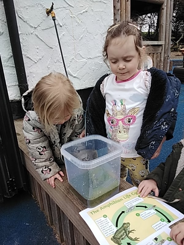 Our Spring theme continues at Acorns with our investigations and observations of the life cycle of a frog. Some frog spawn was kindly donated by one of our families which has given us the opportunity to closely observe the changes that happen to the spawn and the emerging tadpoles.