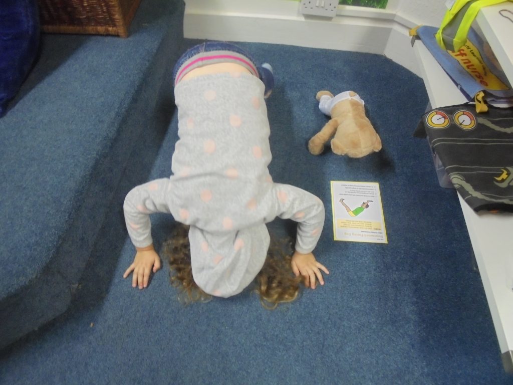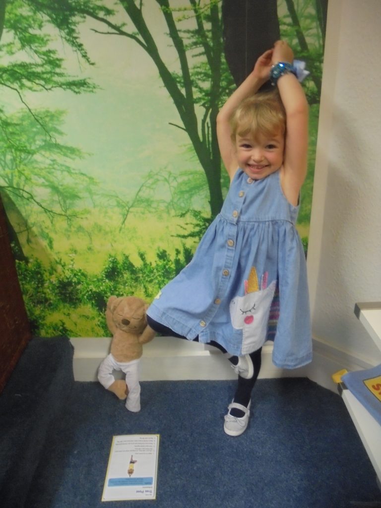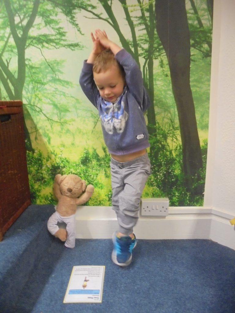 The children in early years  have been making  yoga poses with the help of our Meddy Teddy who shows us how to do them properly. Meddy Teddy is a great yoga partner for the children and brings plenty of fun to our sessions. His special jointing means that we can use him to recreate various yoga positions which motivates the children to have a go.