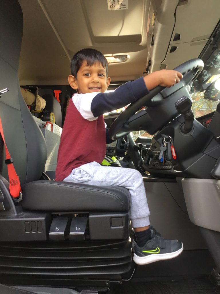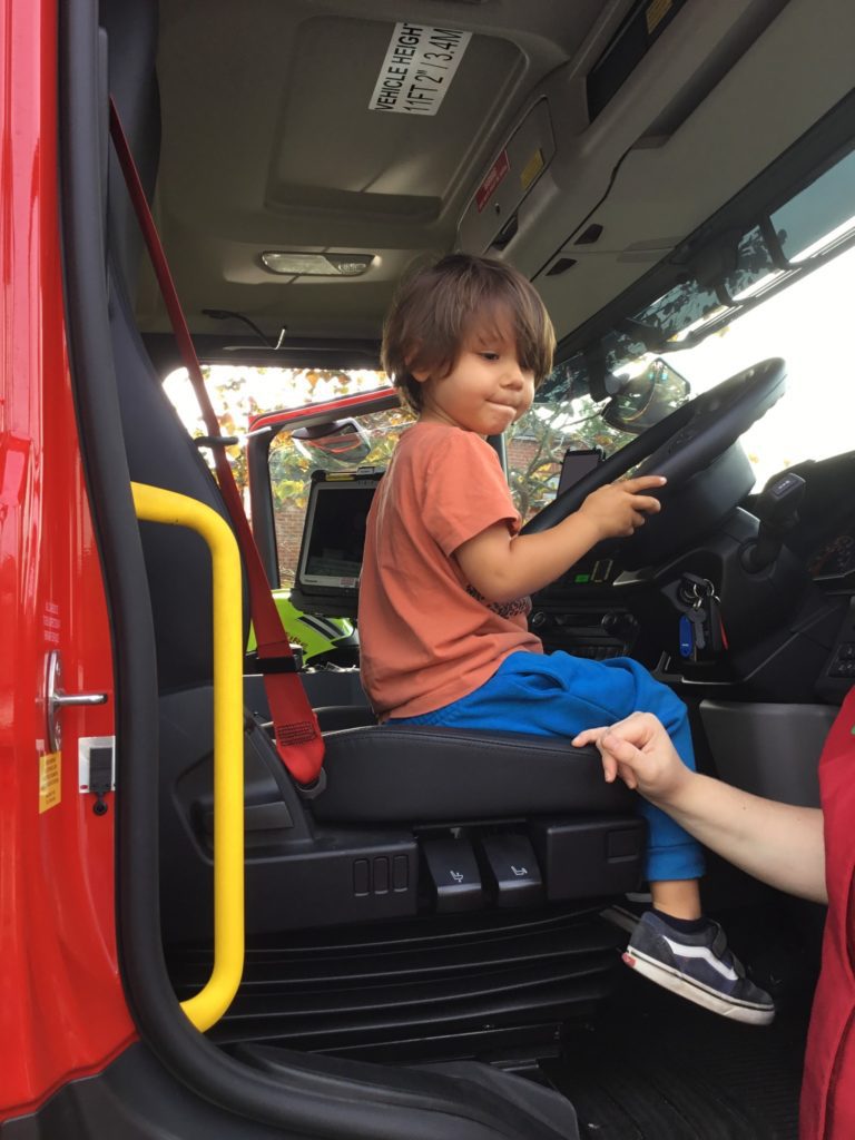 The children all loved exploring inside the fire engine, sitting in the driver’s seat and pretending to drive! They toured the outside of the engine as the fire fighter showed them some of the equipment carried on the big machine.